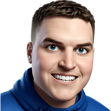 smiling male portrait in blue emoji