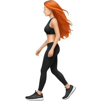 beautiful fair skin red orange long hair white girl cardio black leggings black top beautiful girly full body workout walking headphones side profile emoji