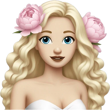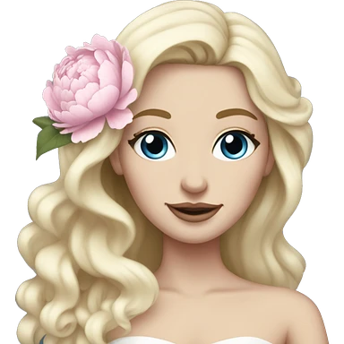 White bride with long light blonde hair and blue eyes with light pink peonies in hair white skin emoji