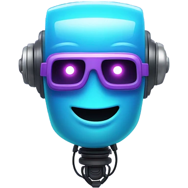 A friendly robot head giving a thumbs up, pixel art style, glowing neon blue and purple outline. emoji