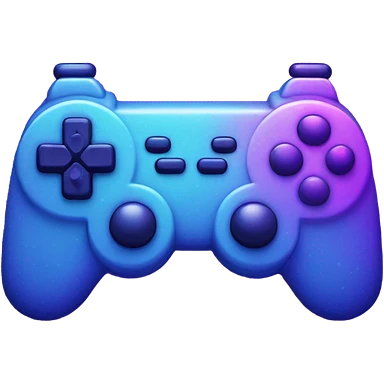 A pixel art gaming controller glowing in neon blue and purple, cyberpunk aesthetic. emoji