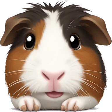 fluffy guinea pig with black white and tan fur wearing pink bow emoji