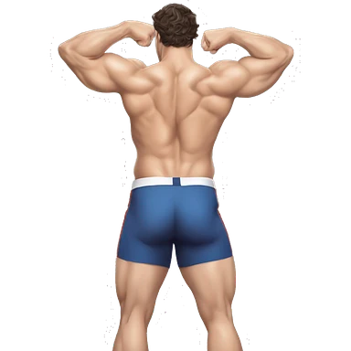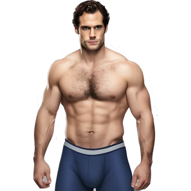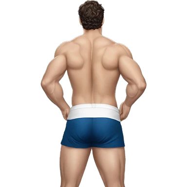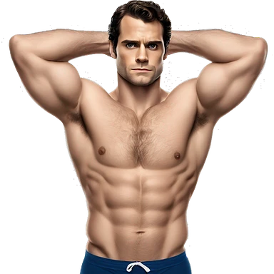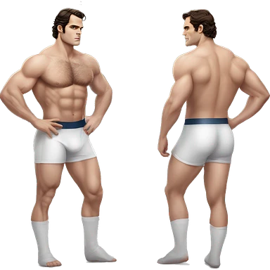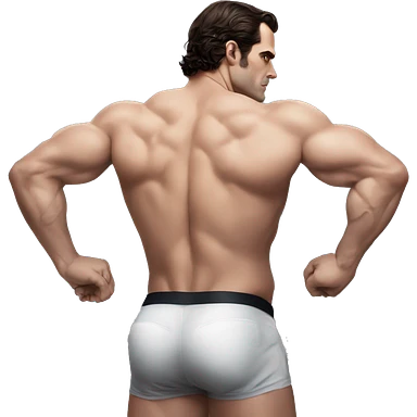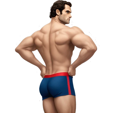 Henry cavill in a jock, backwards view, stretching glutes emoji