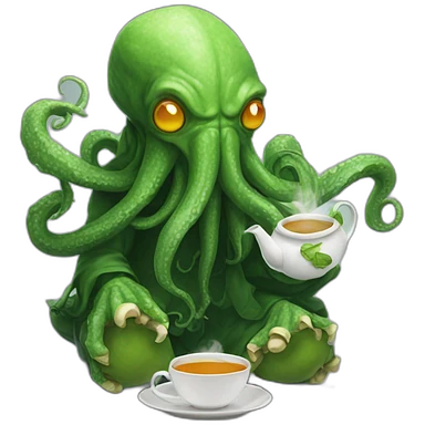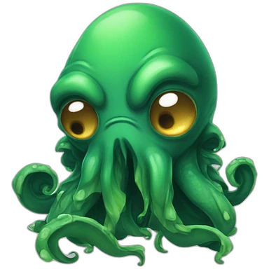 Cthulhu in a T-pose, with a simple, cute appearance, tentacled face, small wings, and slightly menacing eyes. emoji