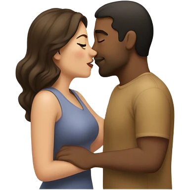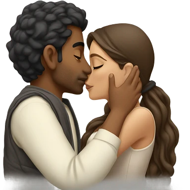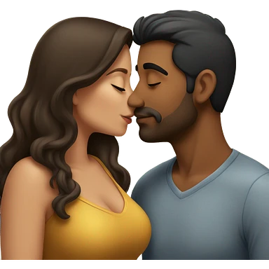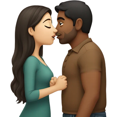 Brunette Guy wearing glasses kissing brunette girl emoji