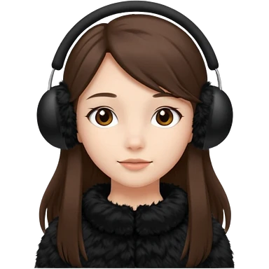 Black fluffy earmuffs with long straight brown hair for girls emoji