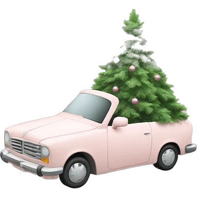 Pale Blush Pink car with a white bound christmas tree strapped to the top emoji