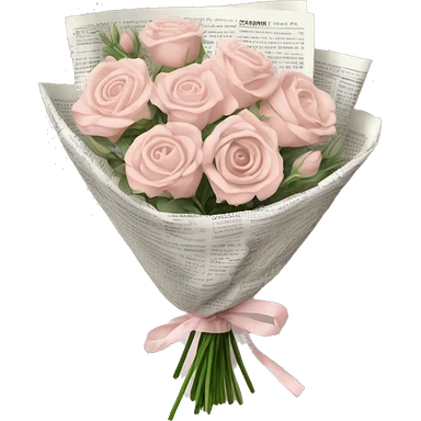 Pale blush pink flower bouquet wrapped in newspapwr emoji
