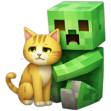 Minecraft creeper cuddling a cat emoji
