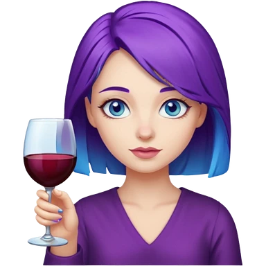 Girl with blue eyes and purple hair with glass of wine emoji