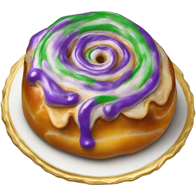 Realistic cinnamon roll king cake with gold, green and purple icing emoji