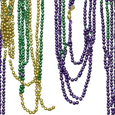 the words “Mardi Gras” with a purple, green and gold glitter fleur de lis emoji