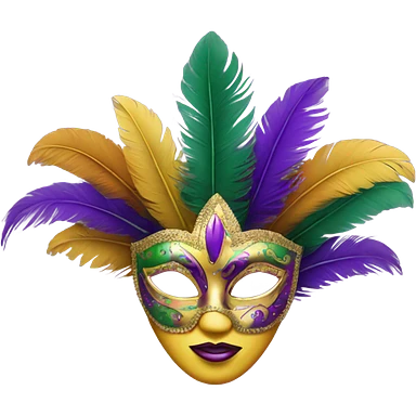 Mardi Gras umbrella with gold, green, and purple feathers emoji