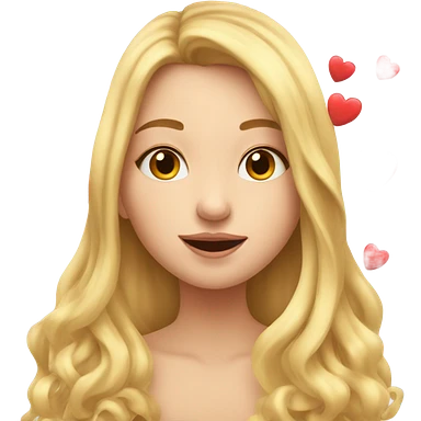 Blonde girl with long hair blowing a kiss in the air with hearts around her emoji