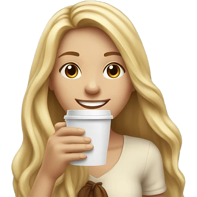 Long haired blonde girl drinking a cup of coffee smiling emoji