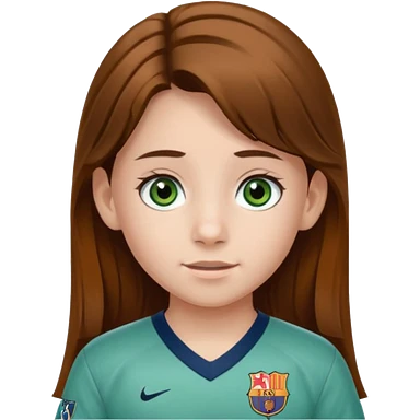 Una niña de 11 años castaña ondulada blanca de ojos verdes pestañas largas con el uniforme de messi emoji