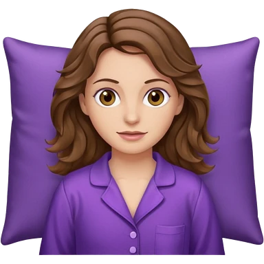Mujer castaña ondulada blanca de ojos color miel con pijama morada emoji