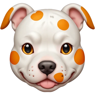 Un perro pitbull blanco con manchas naranjas emoji