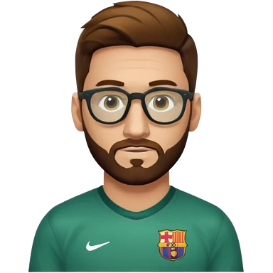 Un hombre castaño con el pelo como el de messi con barba peliroja con ojos de color miel ropa floja camisa verde y con lentes de sol emoji