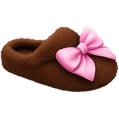 Brown cosmetic bag with cosmetics sticking out and a pink bow emoji