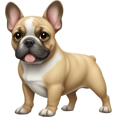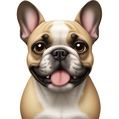French bulldog with black body and ears and tan paws and belly with sunglasses emoji