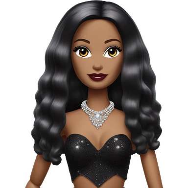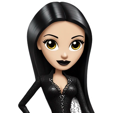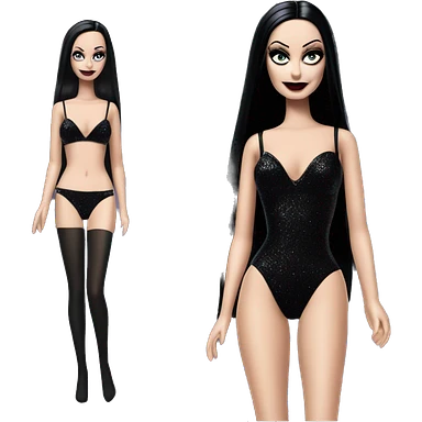 Teen Morticia Addams. Gothic bikini glitter Barbie emoji