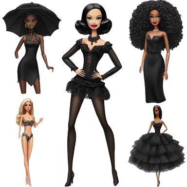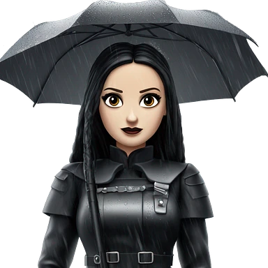 Dark trooper Beach Barbie skipper Wednesday Addams in the rain emoji