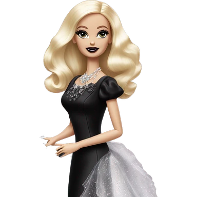 Dazzling Winter Barbie Morticia Addams . Wearing coat gloves boots emoji