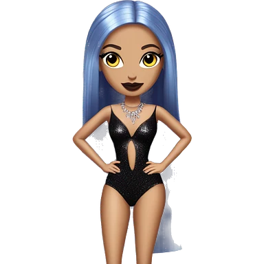 Teen Morticia Addams. Gothic bikini glitter girl Barbie emoji