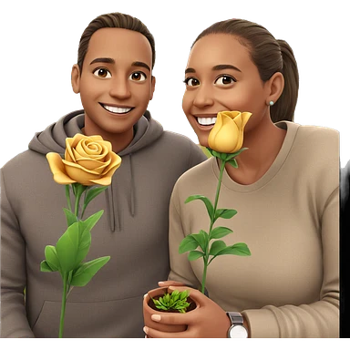 smiling couple with flower outdoors emoji