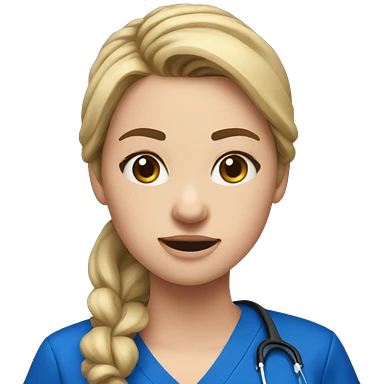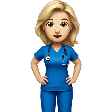 white female nursing school student with dirty blonde hair in royal blue scrub top and royal blue scrub pants with a stethoscope around her neck emoji