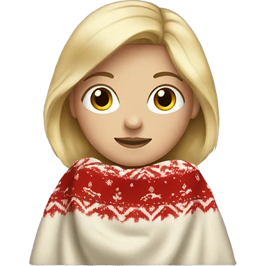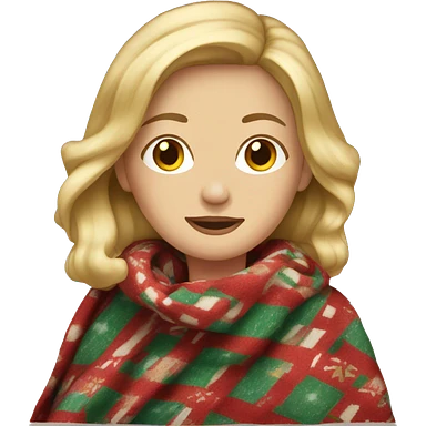 white female, long blonde hair, wearing a patterned christmas blanket emoji