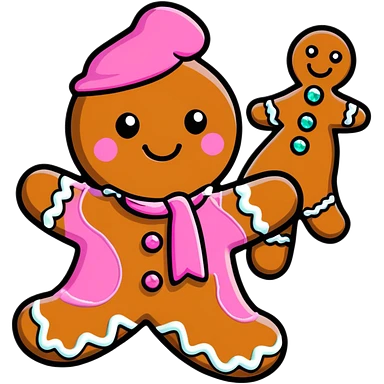3D rendering Gingerbread man, pink icing, realistic 3d diamonds and pearls with iridescent hue emoji