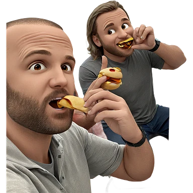White man with brown hair and a mustache, eating a cheesesteak sub emoji
