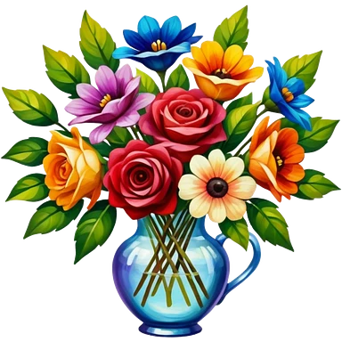 Realistic bouquet of flowers, vibrant oil painting style emoji