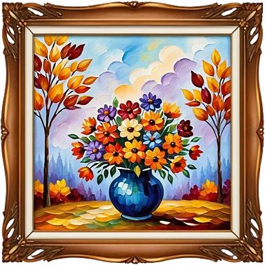 picture frame with painting of autumn flowers, Afremov style emoji