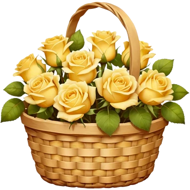 a basket of yellow roses, dreamy lighting, soft painterly textures, whimsical and nostalgic, oil painting style emoji