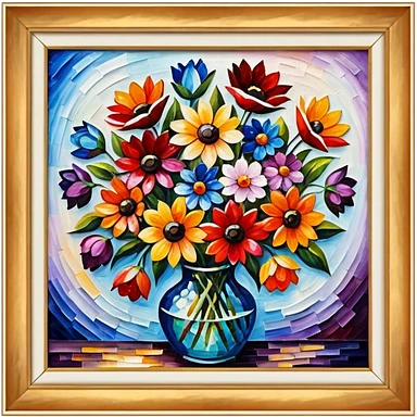 picture frame with painting of flowers, Vibrant colors, Afremov style emoji