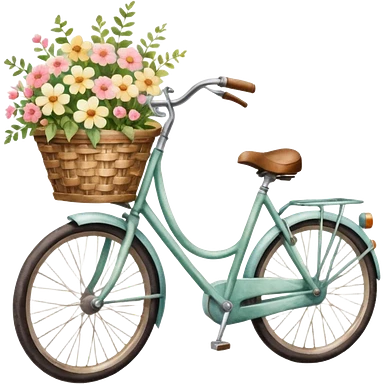 bicycle with a basket of flowers, dreamy lighting, soft painterly textures, whimsical and nostalgic, watercolor style emoji