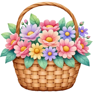 a basket of flowers, dreamy lighting, soft painterly textures, whimsical and nostalgic, watercolor style emoji