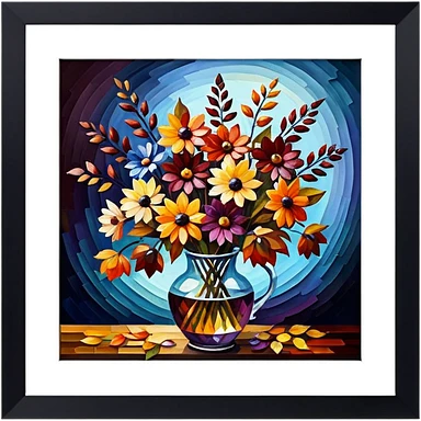 picture frame with painting of autumn flowers, Vibrant colors, Afremov style emoji