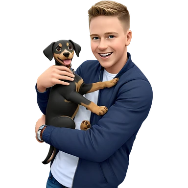 smiling boy with dog outdoors emoji