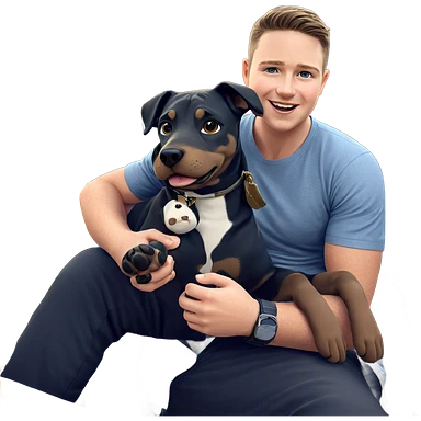 boy sitting with dog outside emoji
