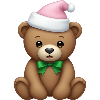 teddy bear with a pale pink christmas hat and a white bow emoji