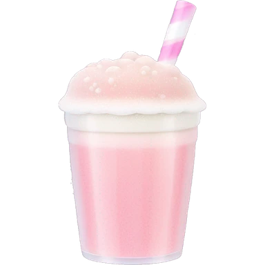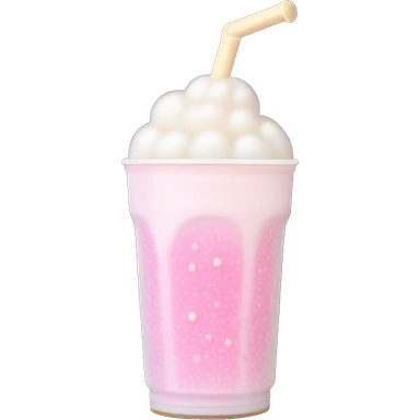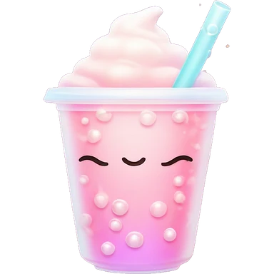 Milk Foam Bubble Tea "A pastel pink bubble tea topped with a creamy layer of glowing milk foam, with tiny glittering particles floating around the rim and shiny tapioca pearls at the base." emoji