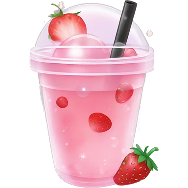 Fruit Bubble Tea "A pastel pink fruit-flavored bubble tea in a transparent cup, with glowing slices of strawberries and floating pearls that shimmer with a faint magical glow." emoji