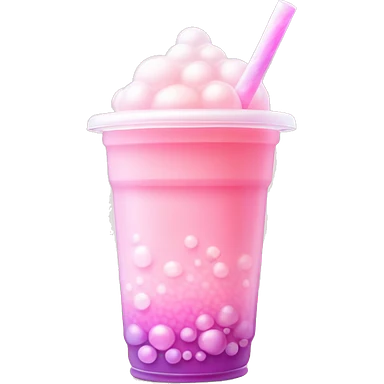 Gradient Bubble Tea "A pastel pink bubble tea with a dreamy gradient from pink to white, sparkling tapioca pearls at the bottom, and a soft glowing straw with light trails." emoji