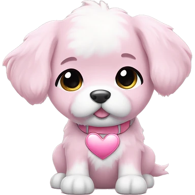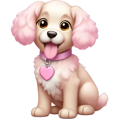 Dog "A pastel pink puppy with fluffy glowing fur, oversized floppy ears, and a collar with a shiny heart-shaped tag that radiates soft light." emoji