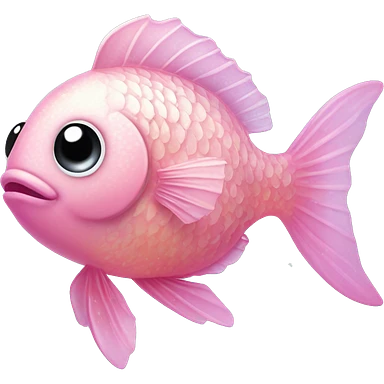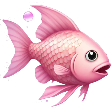 Fish "A pastel pink fish with glowing, translucent scales, sparkling fins, and tiny bubbles filled with glitter floating around it." emoji