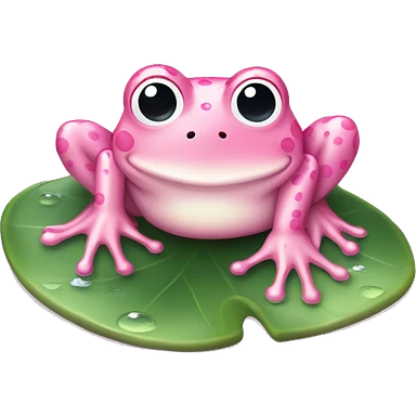 Frog "A pastel pink frog with glossy, glowing skin, heart-shaped spots, and tiny sparkling lily pads floating nearby." emoji